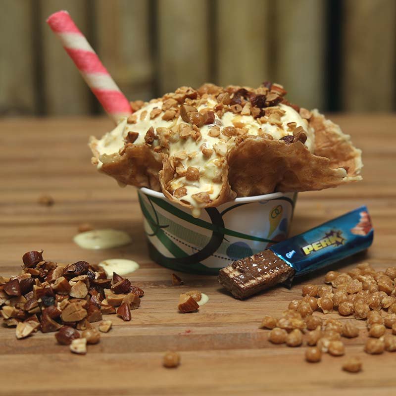 Mixture of Royale Vanilla,Chocolate Ice Cream,Nutella,Brownie topped with Real Nutella and Choco Stick.