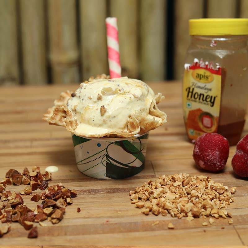 Mixture of Alphonso Mango,Strawberry Ice Cream,Roasted Almond ,Roasted Cashews and Natural Honey.