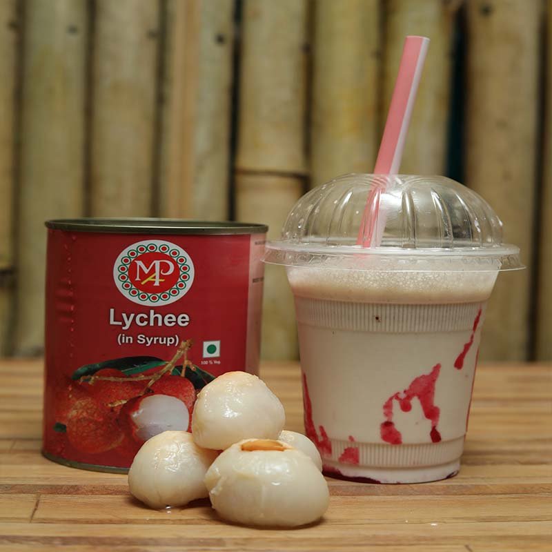 Mixture of Alphonso Mango,Real Litchi Fruit,Litchi Crush,topped with Litchi Crush & Litchi Fruit