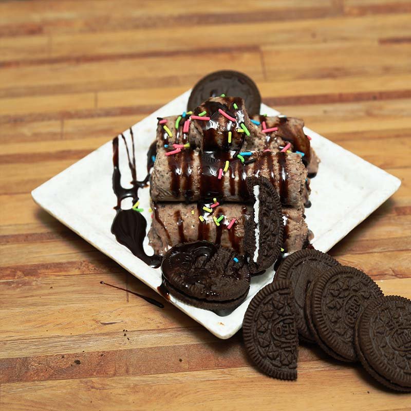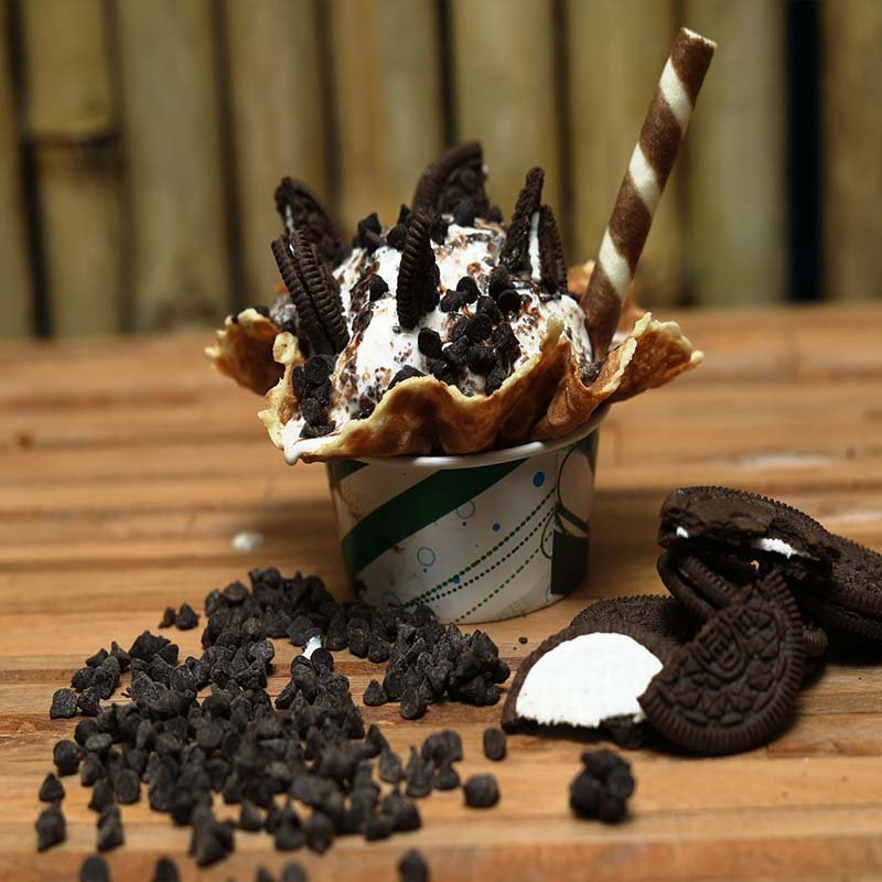 Mixture of Royale Vanilla,Cookies and Cream Ice Cream ,Cookie Oreo ,Hot Fudge topped with Oreo Cookies and Hot Chips.