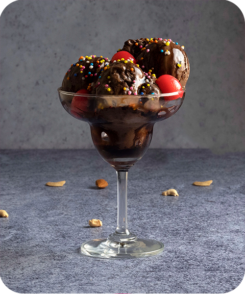 Mixture of Chocolate Ice Cream , Choco-Stick,Choco-Chips,Cashew Nuts , Hot Fudge & topped with